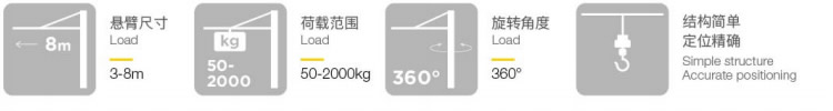 旋臂起重機提供了對近圓形工作區(qū)域內(nèi)良好的工作覆蓋,并支持工具平衡器、氣動平衡器、真空提升工具和葫蘆等;